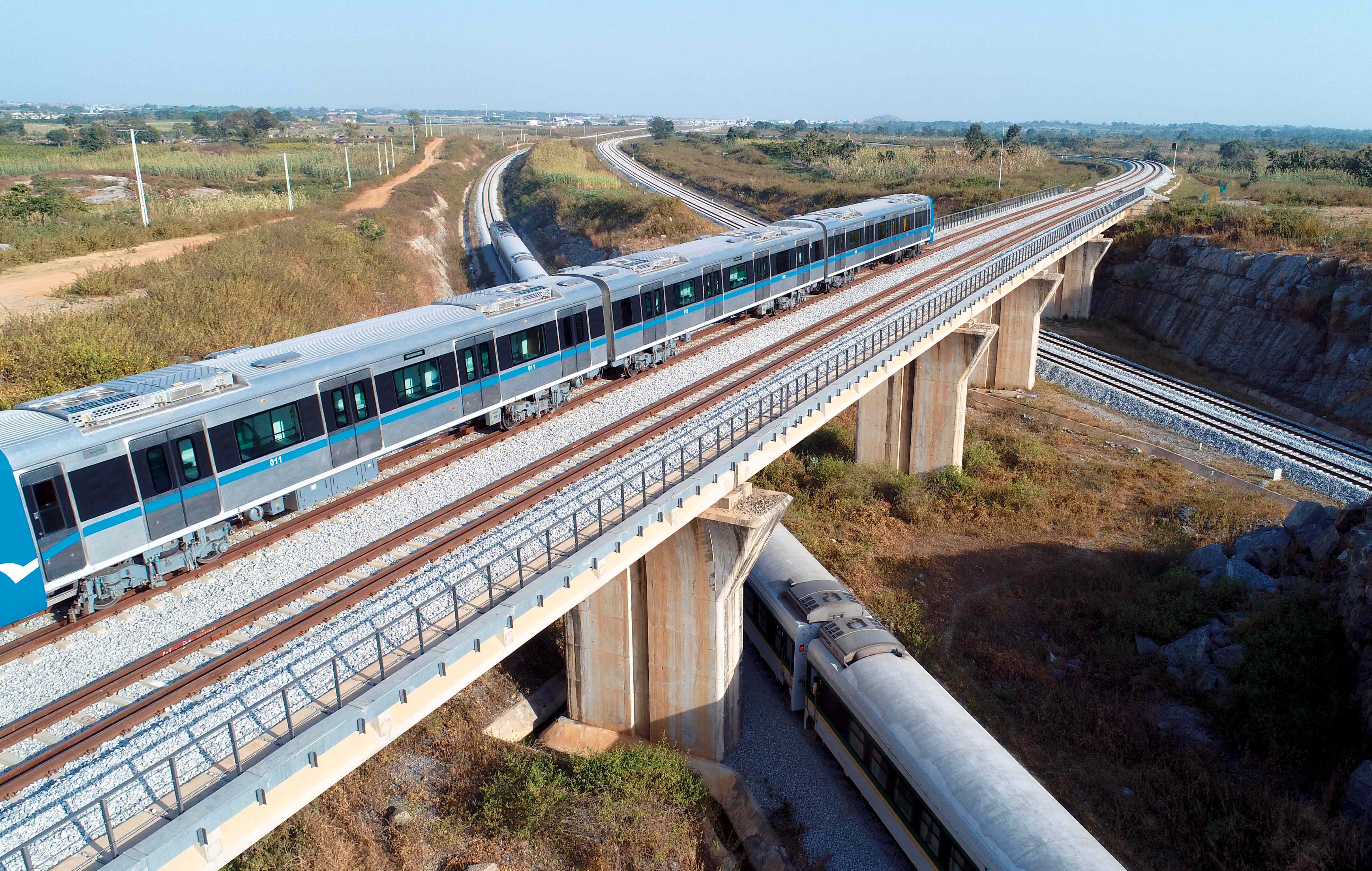 阿布賈城鐵一期工程項目連接阿布賈國際機場、西北衛星城庫布瓦與市區中心,是聯邦首都地區構建軌道一體化交通的開端。該項目連接中國土木實施的阿卡鐵路和阿布賈國際機場新航站樓,通過對三個項目的設計和施工統籌規劃,實現了乘客的無縫換乘,構建了首都阿布賈“干線鐵路+城市輕軌+城市航空+城市公交”的立體交通網絡。隨著動車組和車輛段設備采購、運營服務合同簽訂,阿布賈城鐵成為“建營一體化”的成功范例。
